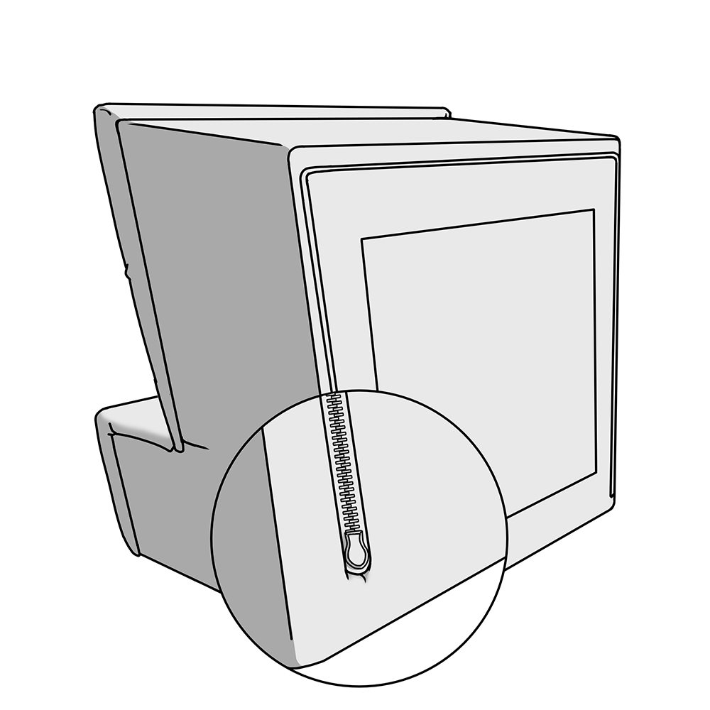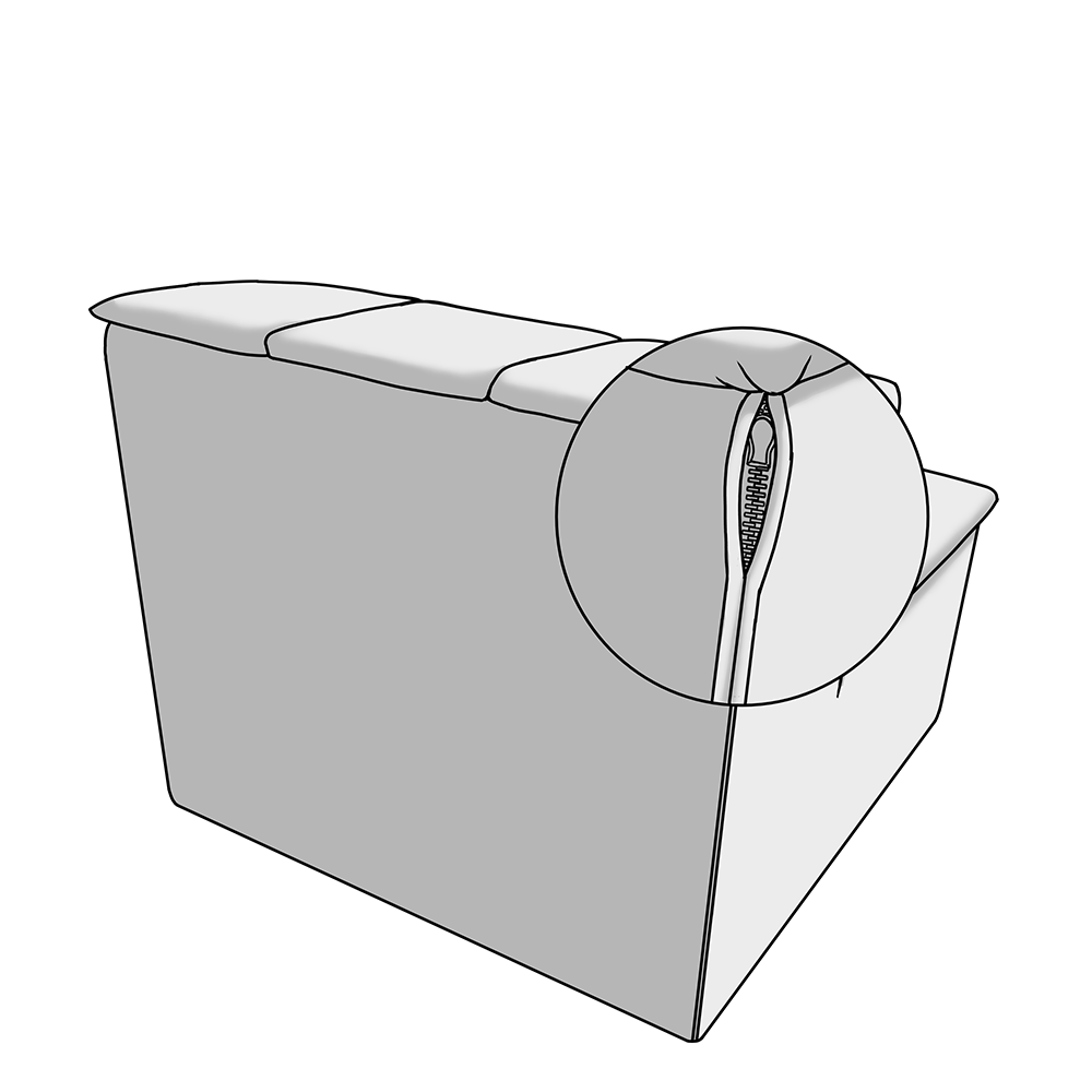 Auf Wunsch arbeiten wir gegen Aufpreis einen zusätzlichen Eckreißverschluss an der Rückseite des Sessel- und Ecken-Moduls ein, so dass das Ab- und wieder Aufziehen der Bezugstoffe deutlich einfacher und schneller geht.